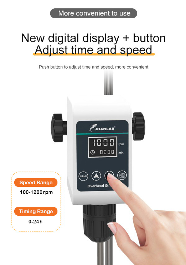 The OS-5S and OS-10S Overhead Stirrers are designed for high-efficiency stirring with a brushless motor for reliable performance. With a digital display and adjustable speed settings from 100 to 1200 rpm, they offer a versatile stirring solution. The OS-5S has a maximum capacity of 5L, while the OS-10S can handle up to 10L of liquid. Ideal for high-viscosity materials, both models feature a long-lasting design for smooth operation, making them perfect for research and industrial applications.